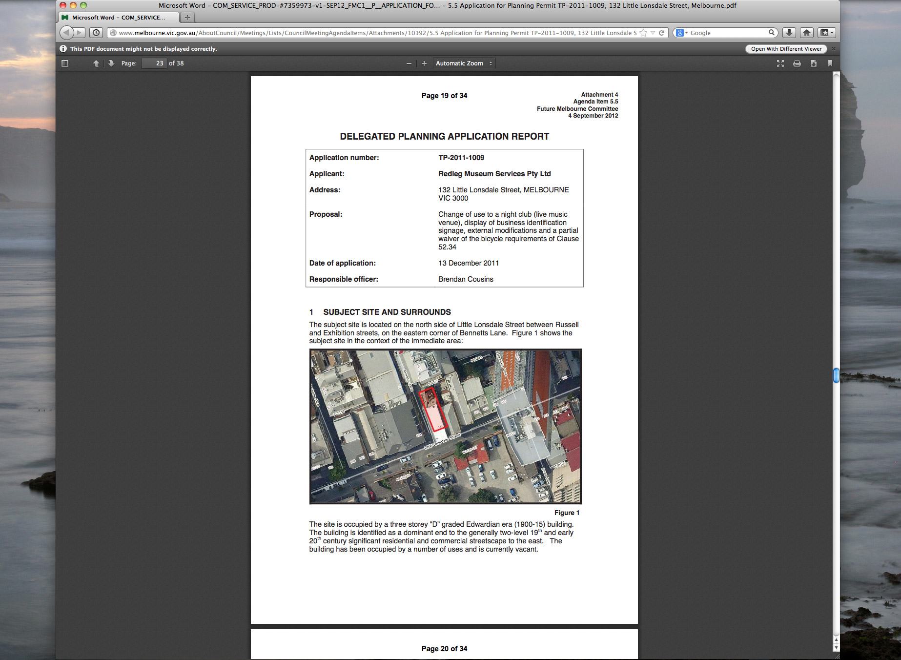 application made to the City of Melbourne, the